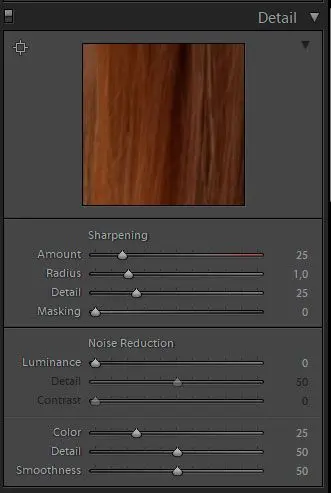 量は、写真全体の鮮明度を制御します。これを増やすと、輪郭とエッジが明確になります。通常、50または60程度のレベルが適切です。